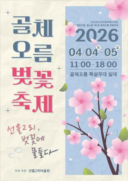 축제 기간에는 벚꽃 터널을 따라 걷는 산책길뿐만 아니라, 눈과 귀를 즐겁게 하는 감미로운 음악 공연과 마을의 넉넉한 인심이 담긴 먹거리 장터가 운영되며, 남녀노소 누구나 편안하게 오를 수 있는 완만한 산책로 덕분에 가족, 연인과 함께 봄의 설렘을 만끽하기에 최적의 장소이다.
